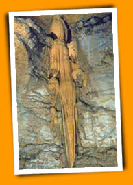 The draperies: the drop of water slides down the rock, like a drop of rain on a window pane. The second drop follows the first one, the third one also follows the same path. Each drop deposits its calcite on the same path. That is how these superb translucent, sparkling and even musical "draperies" are formed. Delicately, using a small stick or a finger, they can be used to play some melodies!